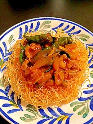 茹でて余った素麺で スタミナあんかけ揚げ素麺 レシピ 作り方 By Decopon0 楽天レシピ