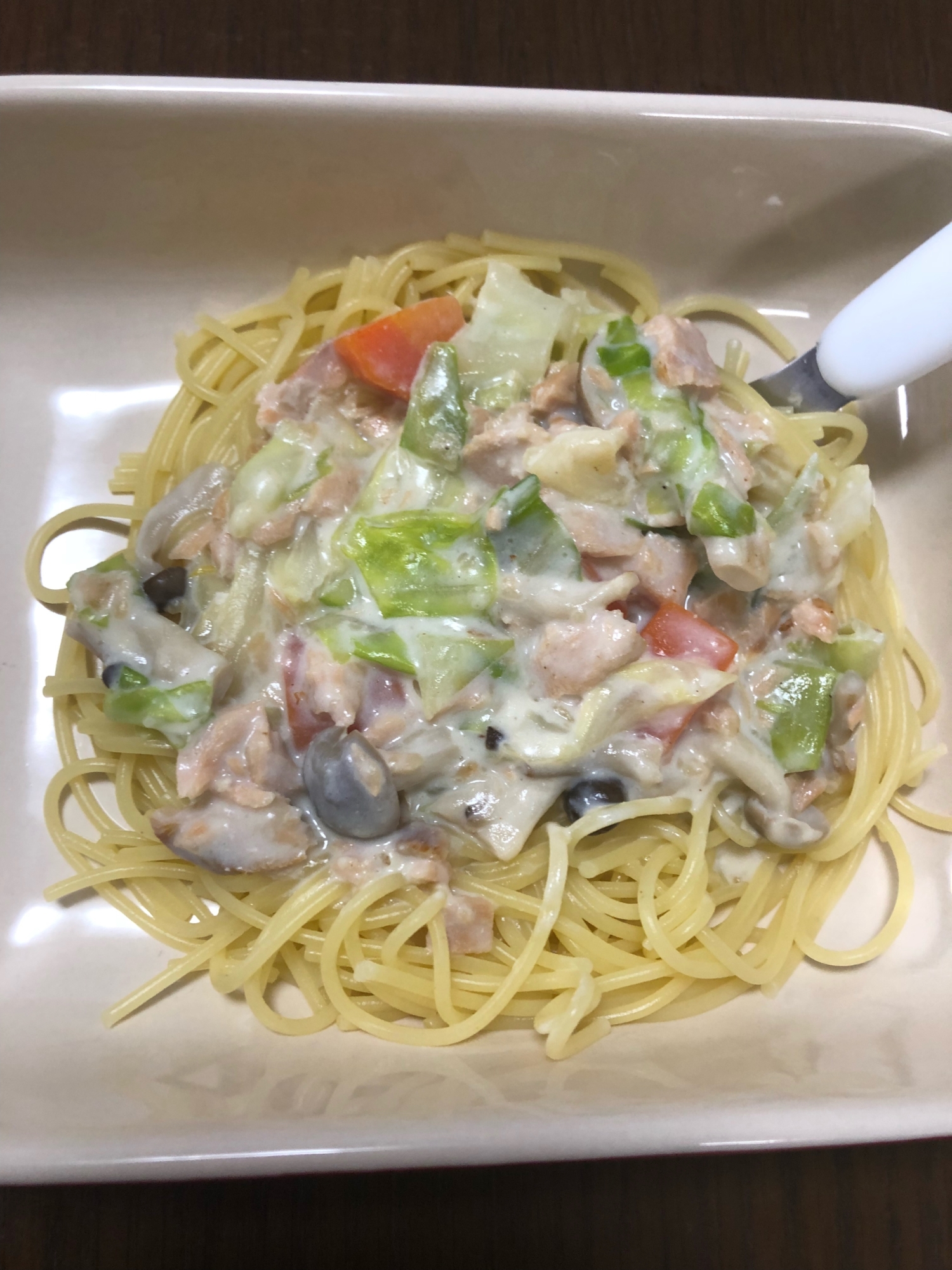 幼児食 取り分け可 鮭っキャベツのクリームパスタ レシピ 作り方 By Hamumisan 楽天レシピ