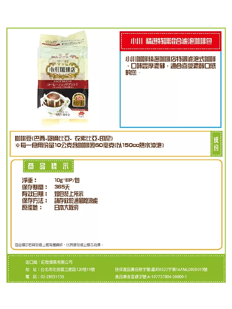 博客來 小川精選特調混合濾泡咖啡包 80g