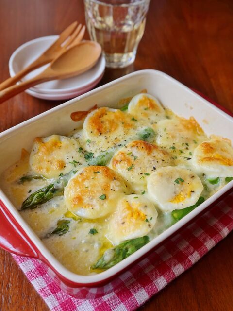 旬の野菜を満喫 アスパラガスとゆで卵のチーズ焼き 暮らしニスタ