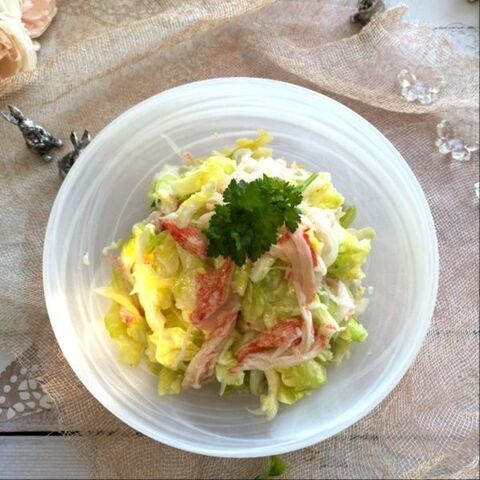 抱えて食べたい 春キャベツと新玉 カニカマの塩麹サラダ 暮らしニスタ